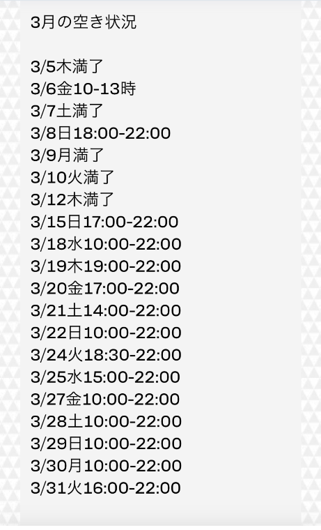 お店携帯は持ち歩いてないのと通知がこないため、ショートメールの返事が遅いです。お急ぎの時はお手数ではありますが、 LINEか下記のGmail等でお問い合わせ下さい。