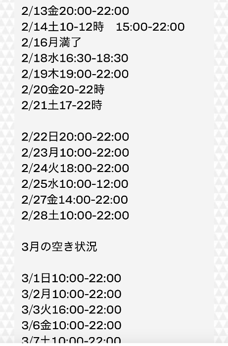 お店携帯は持ち歩いてないのと通知がこないため、ショートメールの返事が遅いです。お急ぎの時はお手数ではありますが、 LINEか下記のGmail等でお問い合わせ下さい。